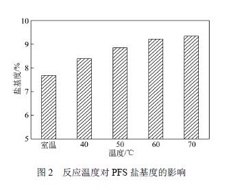 由上可知,反應溫度在一定程度上可提高PFS 的鹽基度,而不影響其他性能。