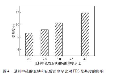 綜上可得,提高硫酸亞鐵和硫酸的摩爾比可以 提高PFS 鹽基度,同時不影響其他性能。